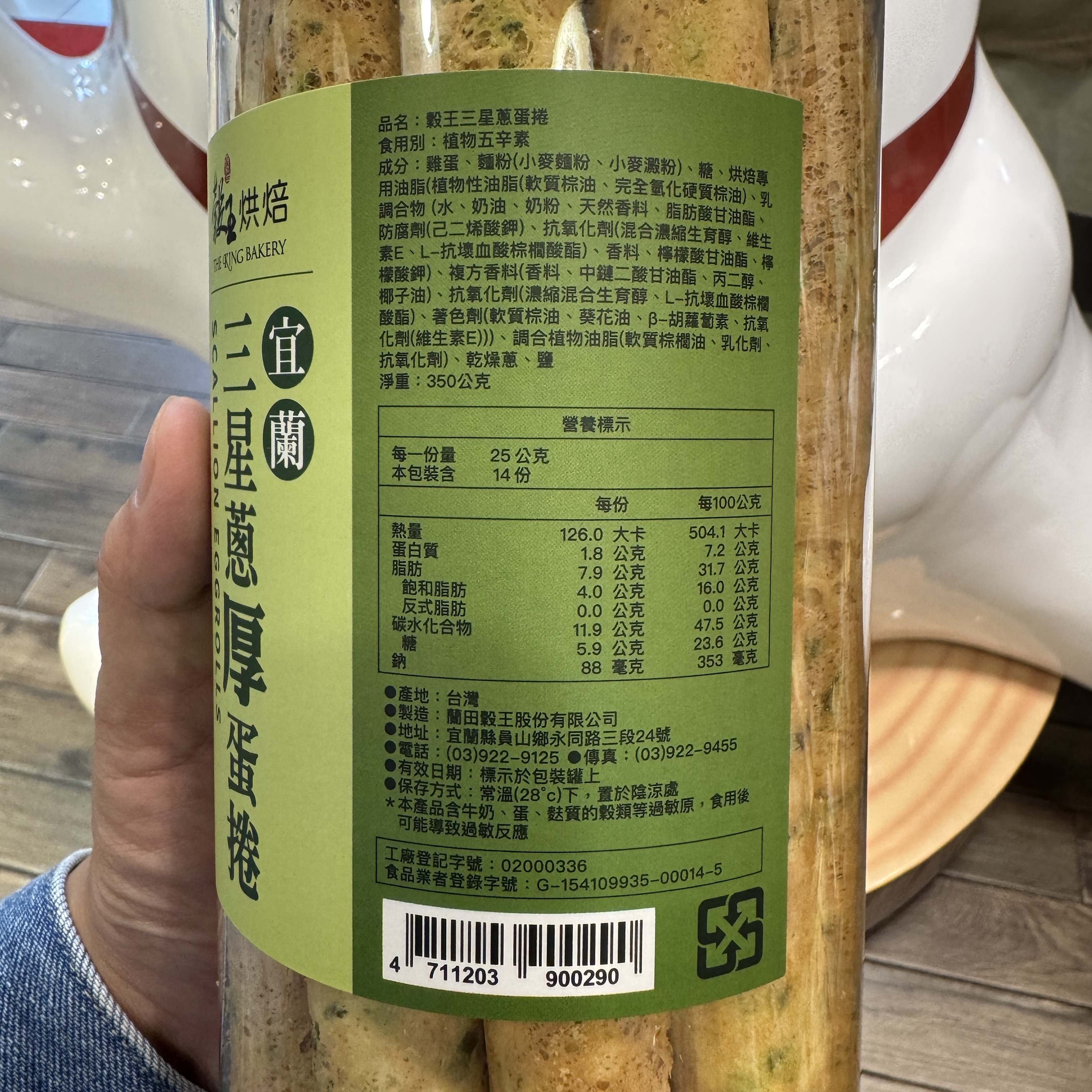 CT01【宜蘭穀王烘焙】三星蔥厚蛋捲 (350g罐裝) 五辛素 今團新品