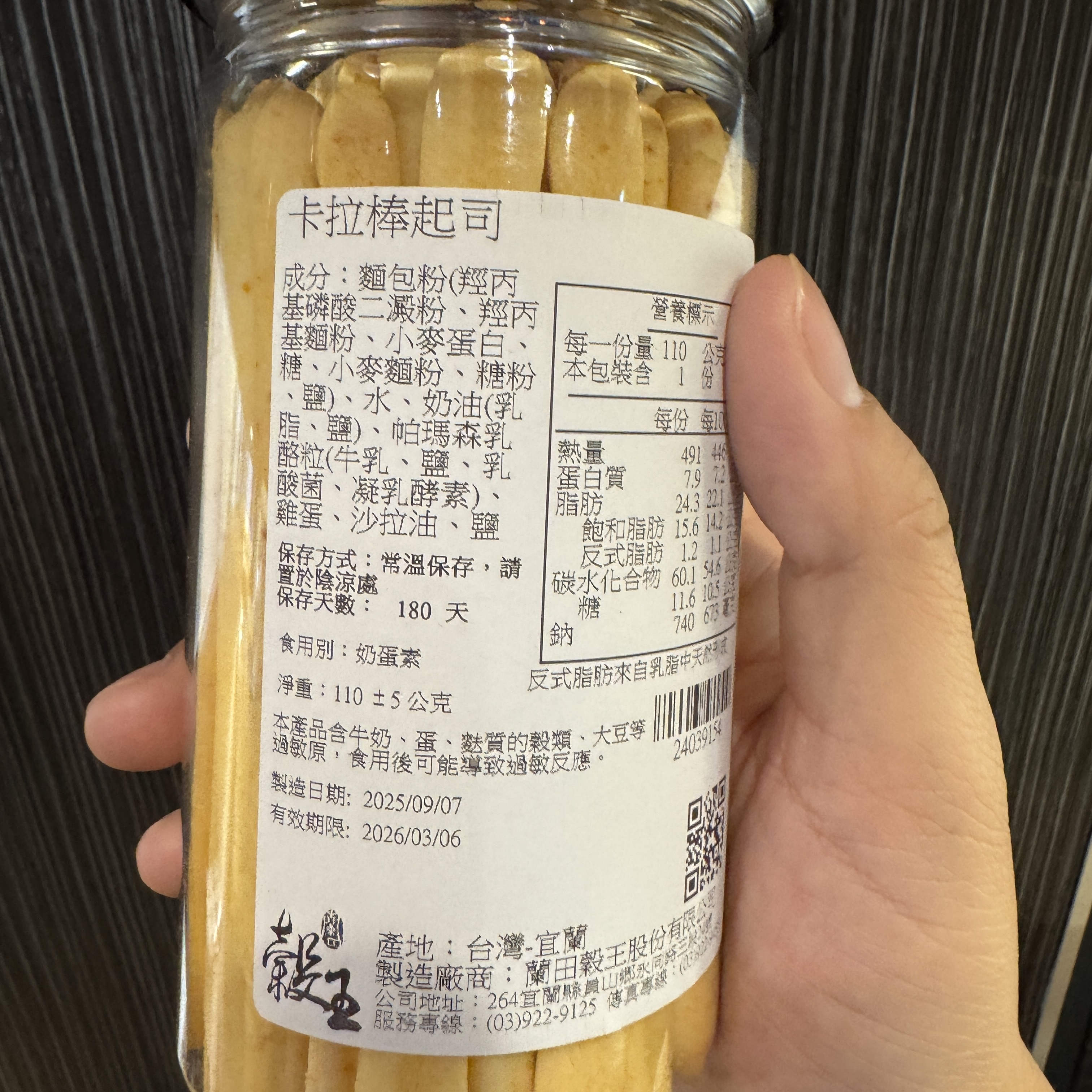CT06【宜蘭穀王烘焙】卡拉起司棒 (100g) 蛋奶素 今團新品