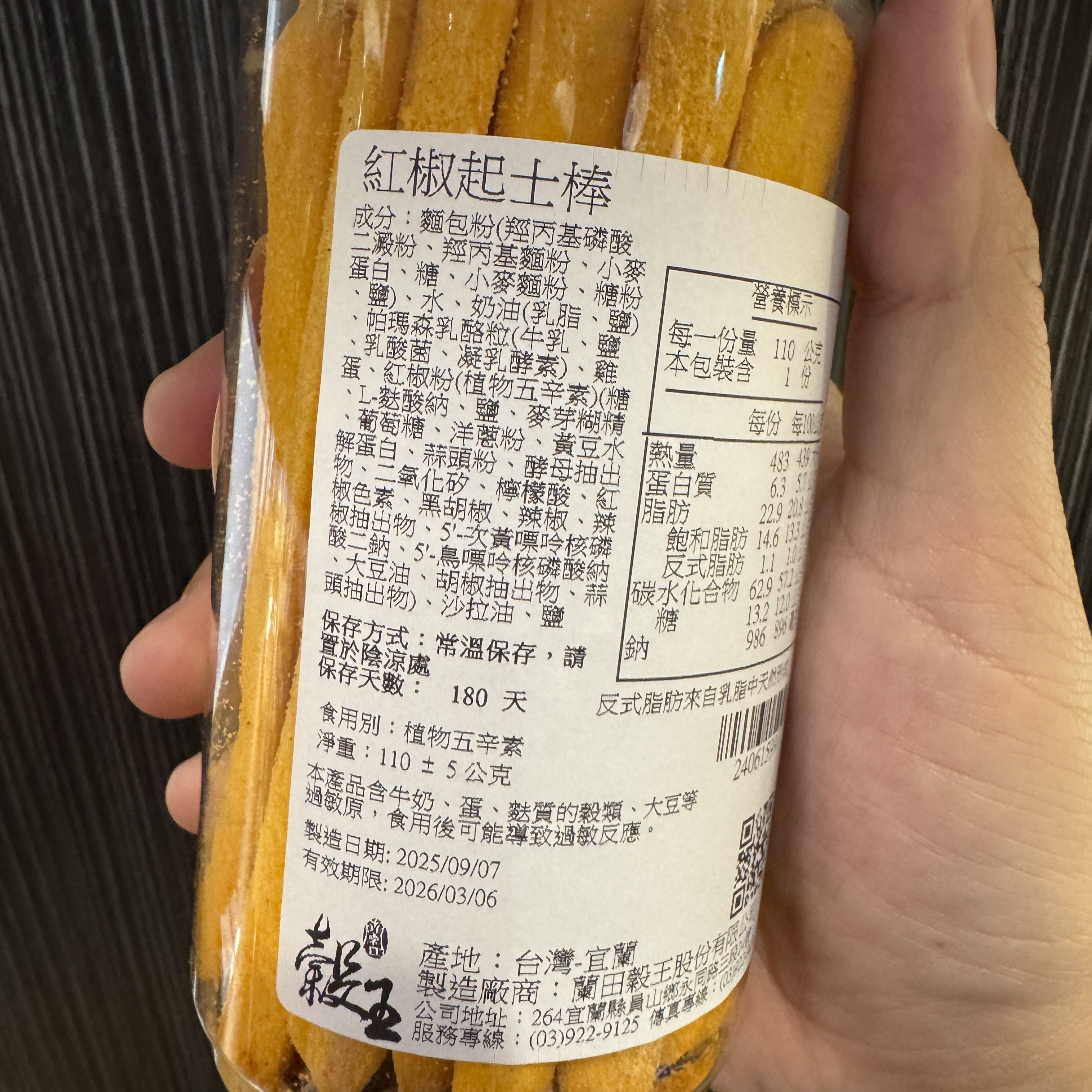 CT07【宜蘭穀王烘焙】卡拉紅椒起司棒 (100g) 蛋奶素 今團新品