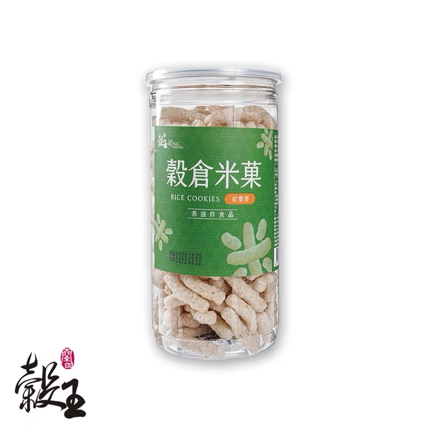 ‧ 4種天然口味:原味糙米、紅藜麥、黑米、紅麴,天然美味! ‧ 特選糙米:宜蘭在地糙米,真材實料! ‧ 超大份量:大份量罐裝,一次滿足! 穀王烘焙│穀倉米菓系列是2022年穀王全新上市系列之一!大份量罐裝,讓您一次滿足,是您喜愛零嘴最佳的選擇! 它使用爆量的宜蘭在地新鮮糙米,經由設計團隊精心設置的米菓機,製作出來的,一開罐就可以聞得到天然的糙米香,讓您忍不住就想馬上嚐鮮一下,酥脆涮嘴的口感,讓您一口接著一口,整罐秒殺! 穀王烘焙│穀倉米菓系列,是市面少有的大容量罐裝!讓您送禮有心意、自用超滿意! 重量規格:100g±5%/一罐,外包裝袋之最大材積為11*11*21公分。 過 敏 原:無。 葷 素:全素。 保存期限:常溫保存120天。(以實際包裝為準)