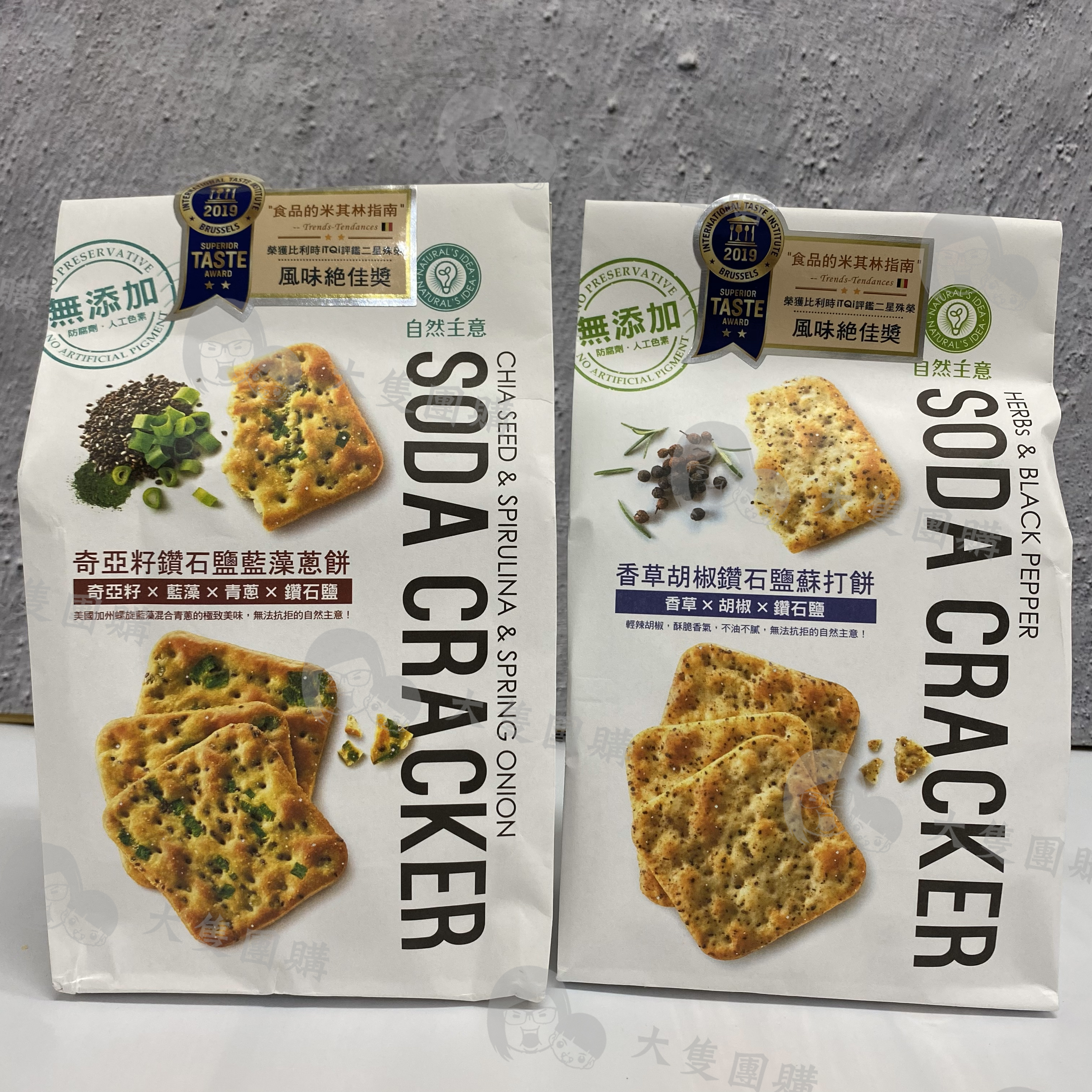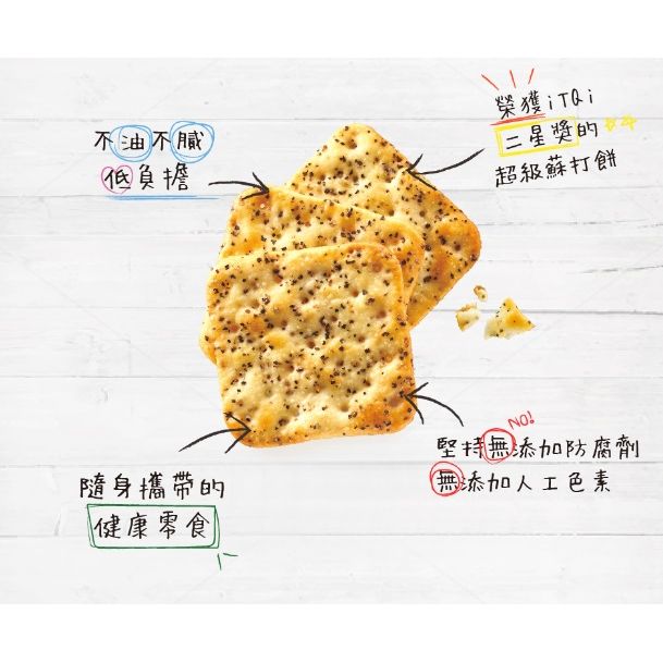 【大隻團購】冠軍蘇打餅🥨 奪得國際獎項的蘇打餅登陸大隻團購! 以天然食材為主打,品嚐酥脆鹹香的同時,顧及健康~ 自然主意的蘇打餅無添加防腐劑、人工香料及色素,選用奇亞籽、鑽石鹽等天然食材~ 這次系列選用美國天然鑽石鹽,從古代海床取出,純淨未經過精煉,擁有豐富甘鹹味,內含超過50種天然微量礦物質及碘,獲美國最佳天然調味料金牌 🍪 奇亞籽鑽石鹽藍藻蔥餅 *奇亞籽x鑽石鹽x藍藻x新鮮青蔥 *加州藍藻有豐富藻青苷,營養滿滿 *超級食物奇亞籽,含不飽和脂肪酸、完整蛋白質及膳食纖維,幫助維持腸道機能 *蔥香突出,鹹香酥脆 . 🍪 香草胡椒鑽石鹽蘇打餅 *香草x胡椒x 鑽石鹽 *添加黑白胡椒、花椒、羅勒、小茴香、迷迭香草、肉桂 *黑白胡椒風味,辛香料香氣重 本團有以下選項: 1️⃣ 奇亞籽鑽石鹽藍藻蔥餅 2️⃣ 香草胡椒鑽石鹽蘇打餅 內容物:6小包,每小包有3片 食用效期: 12個月 (以實際包裝為準)